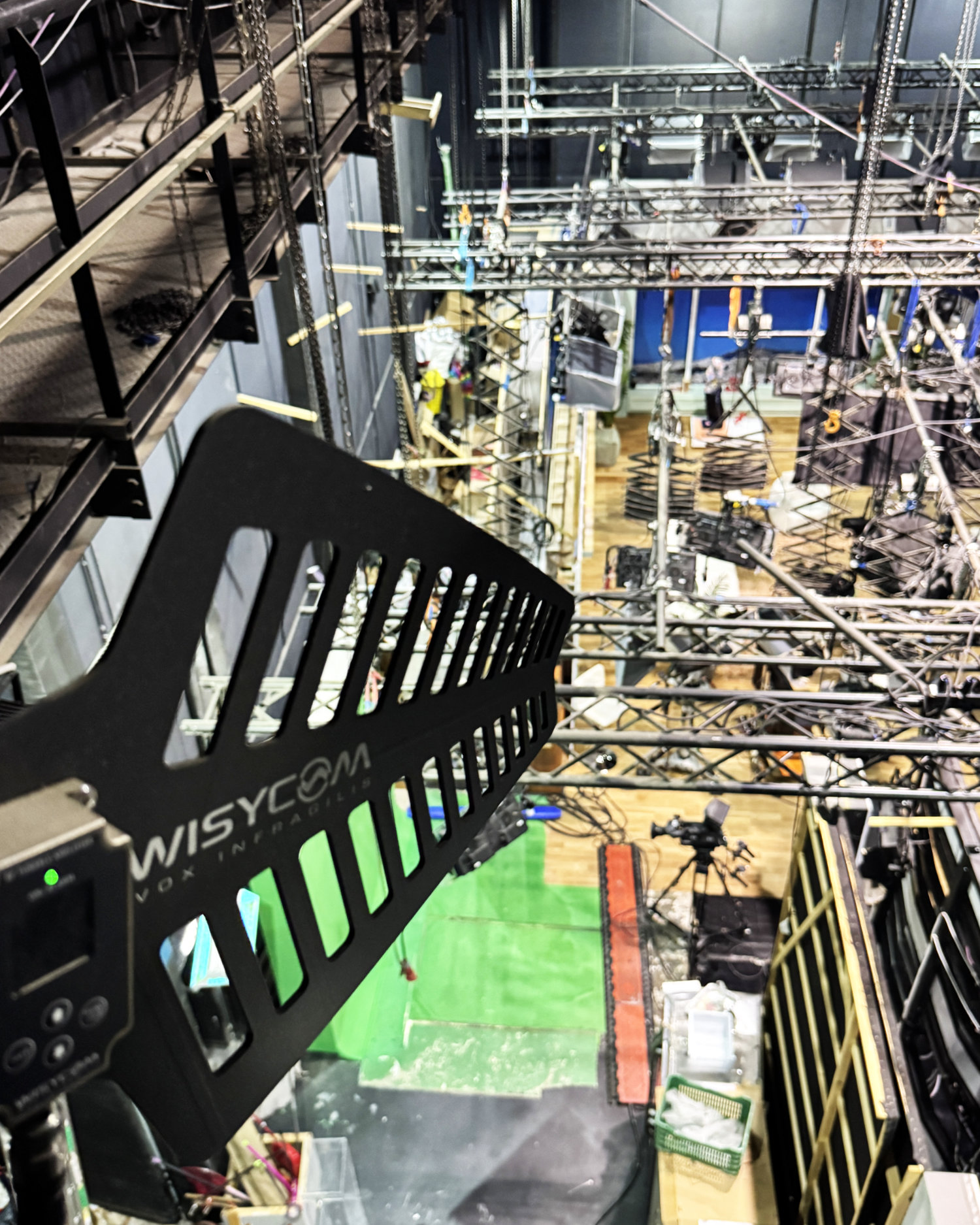 The installation features Wisycom MRK980 receivers, renowned for their DSP processing and multiband operation. To ensure uniform coverage across the expansive studio floors and corridors, wideband directional antennas were strategically installed in both the rigging grids and surrounding areas. This setup facilitates a seamless RF handover with no audible artifacts, which is crucial for moving talent.