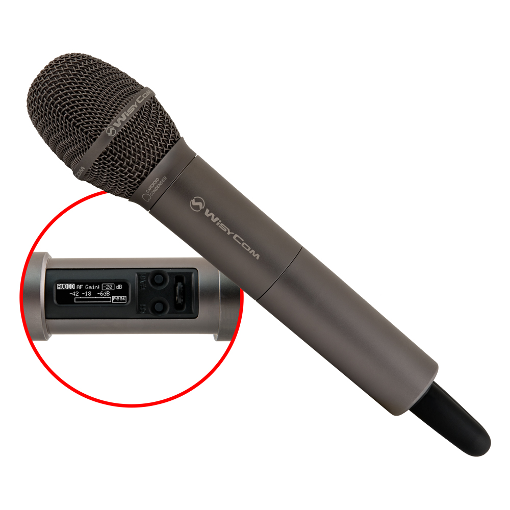 MTH400 is a handheld transmitter especially designed for professional wireless microphone applications. It is very easy and quick to use thanks to OLED display and 1 joggle selector and 2 buttons for straight setup of gain and channel. MTH400 benefits also of the latest Wisycom RF technology, it has been especially designed for robustness against noise and self-interference thanks to a special intermodulation cancellation circuit.